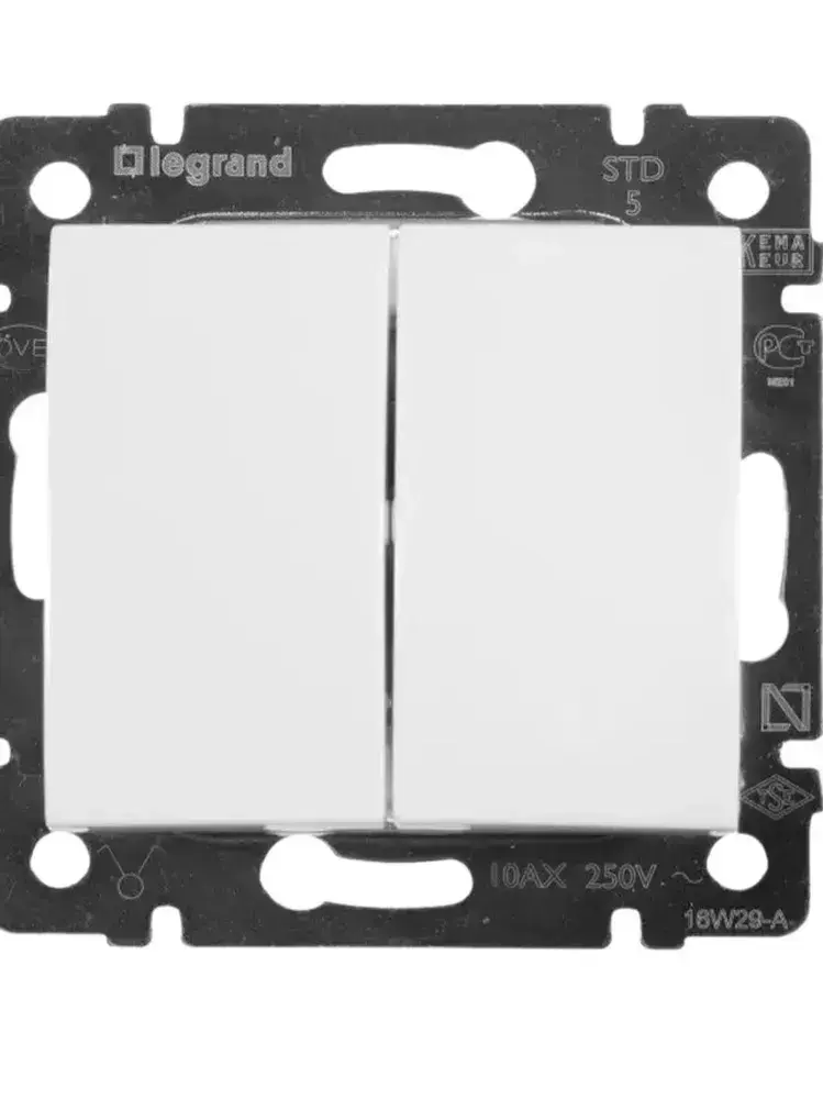 Выключатель двухклавишный Legrand Valena (белый) 774405- 1шт.