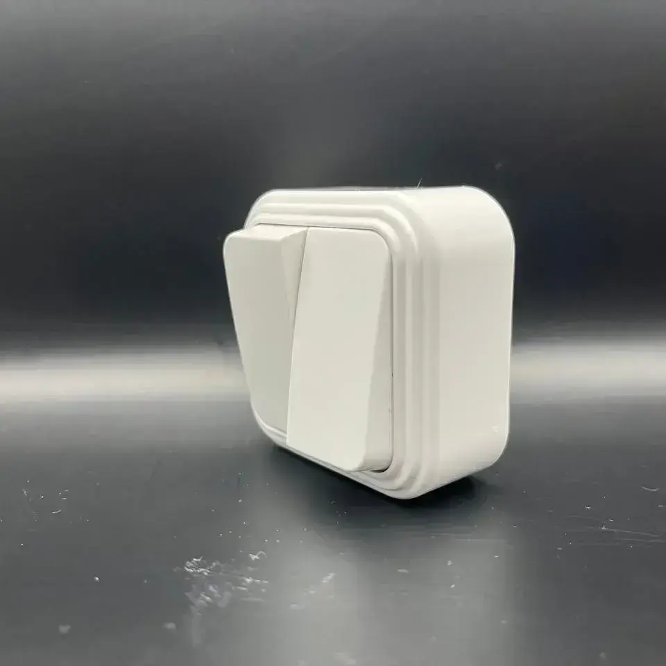 выключатель двухклавишный накладной, Белорусский двойной наружный, белый