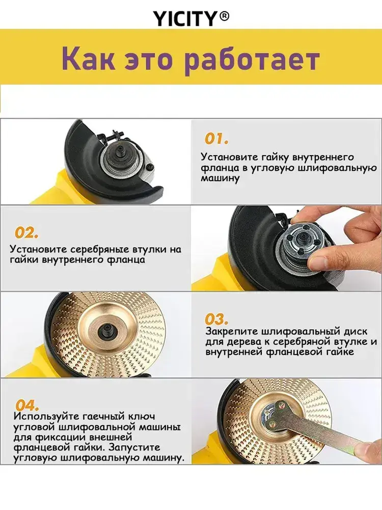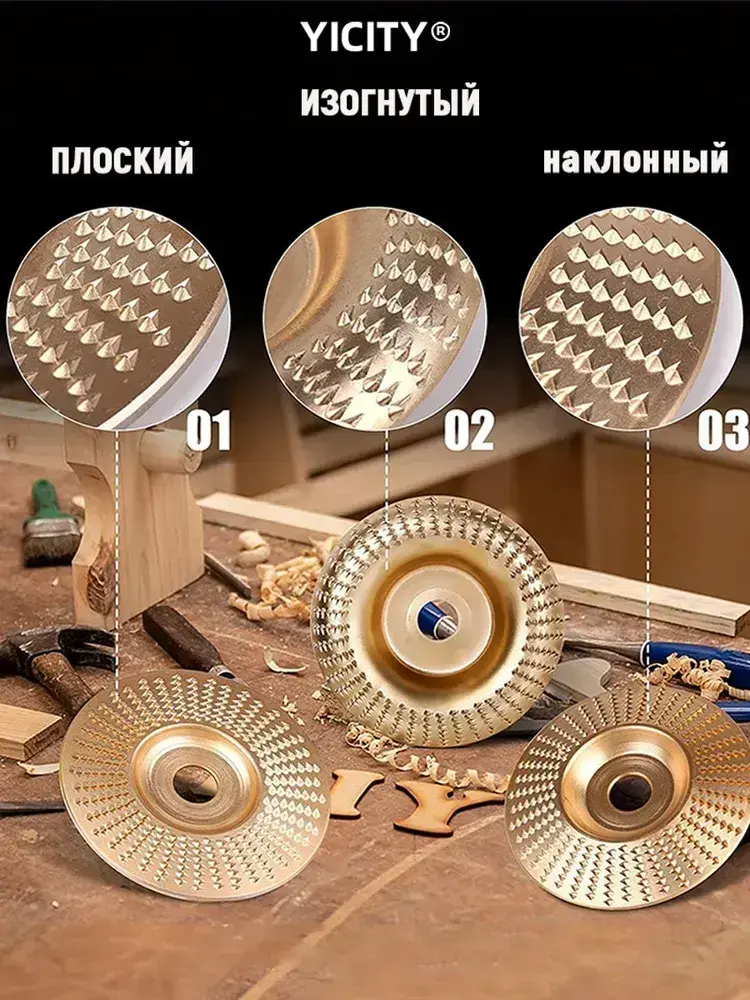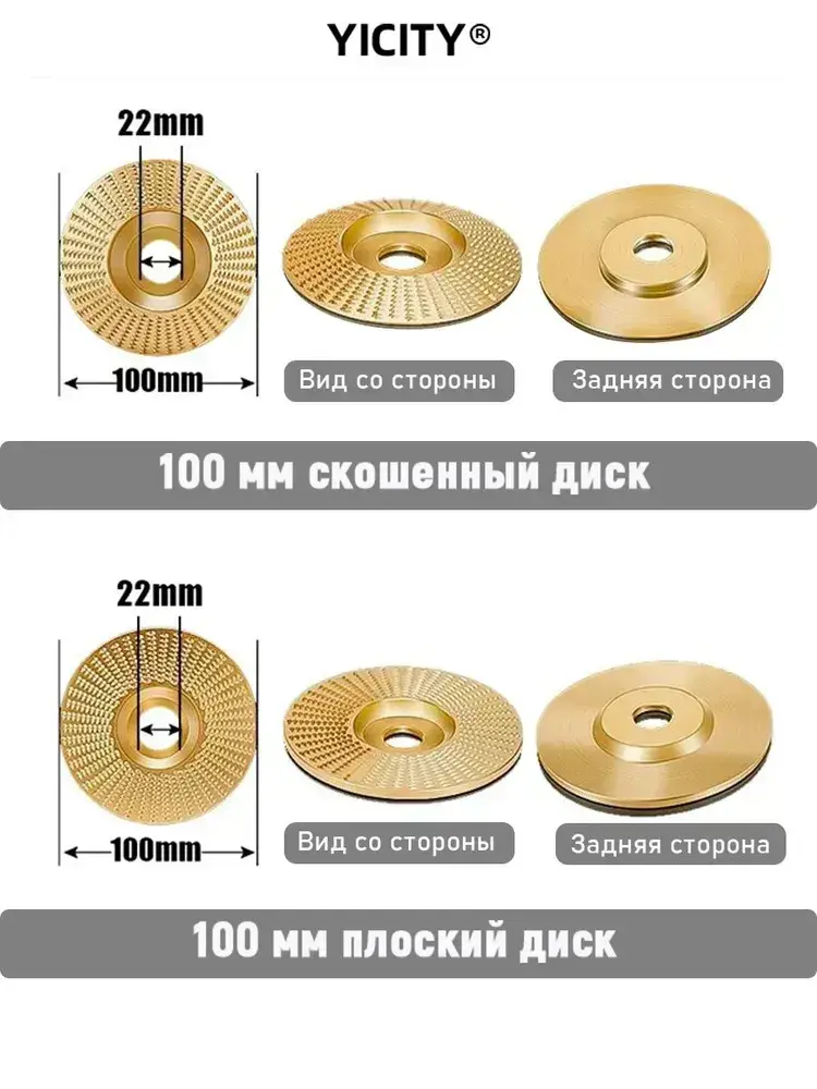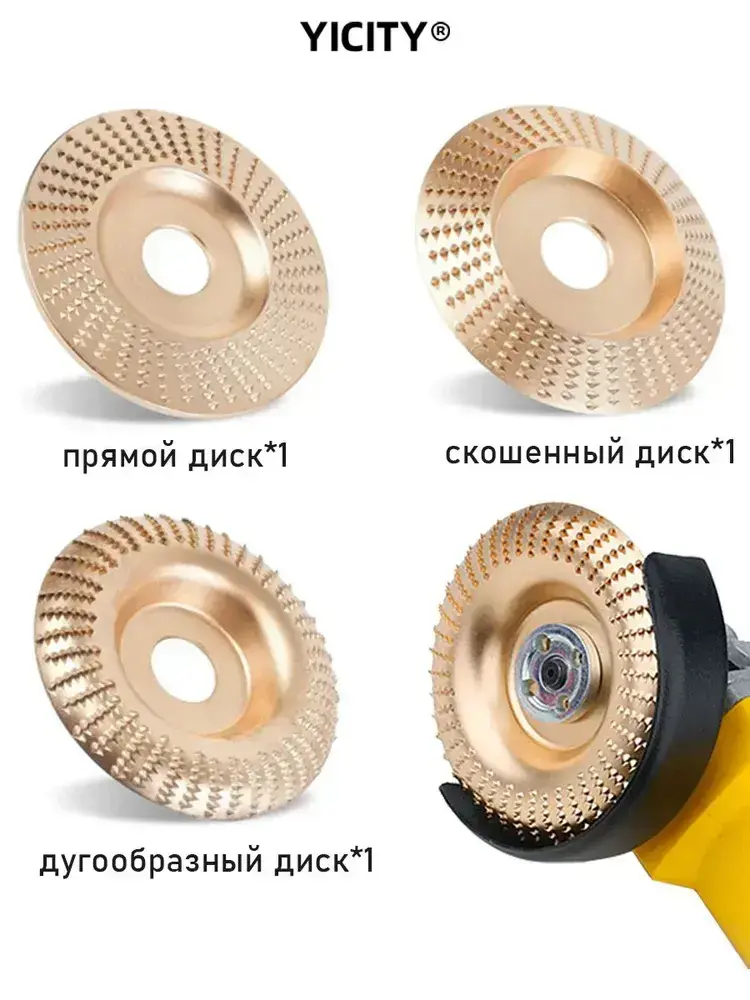 YICITY Набор из 3 дисков для резьбы по дереву, угловая шлифовальная машина 100мм с оправкой 22 мм, шлифовальный круг для резки дерева / Набор для полировки / Круг зачистной