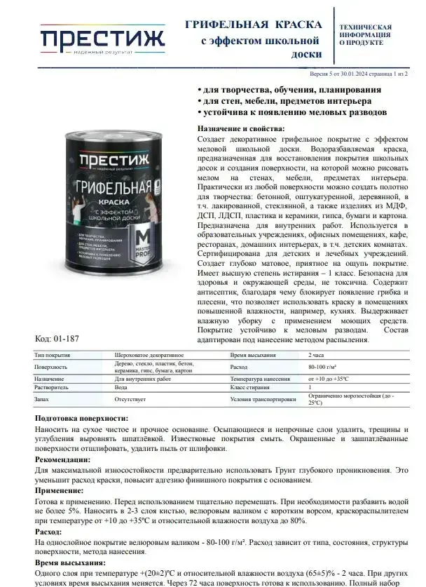 Зеленая ГРИФЕЛЬНАЯ КРАСКА 0.9 кг Престиж Мастер. Краска с эффектом школьной доски