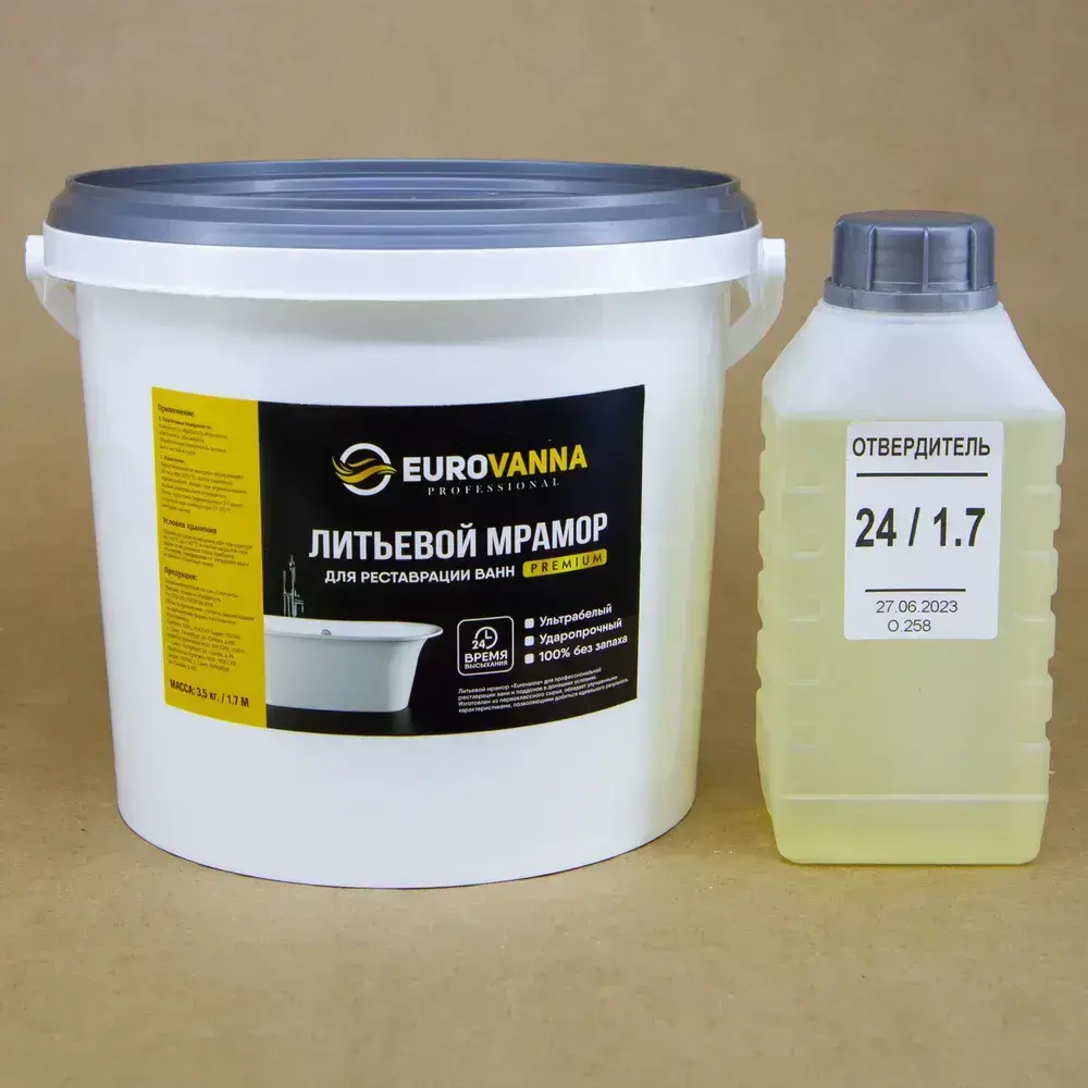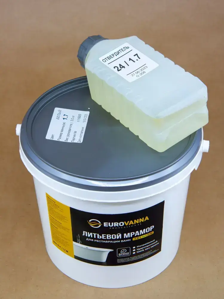 Жидкий акрил для ванн 1.7 м, (3.6 кг). Литьевой мрамор, жидкий мрамор. Краска эмаль для ванн